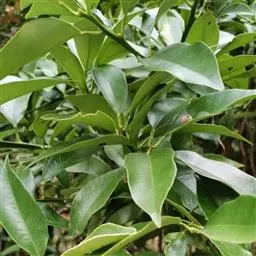 柚 乔木。嫩枝、叶背、花梗、花萼及子房均被柔毛,嫩叶通常暗紫红色,嫩枝扁且有棱。叶质颇厚,色浓绿,阔卵形或椭圆形,连冀叶长9-16厘米,宽4-8厘米,或更大,顶端钝或圆,有时短尖,基部圆,翼叶长2-4厘米,宽0.5-3厘米,个别品种的翼叶甚狭窄。