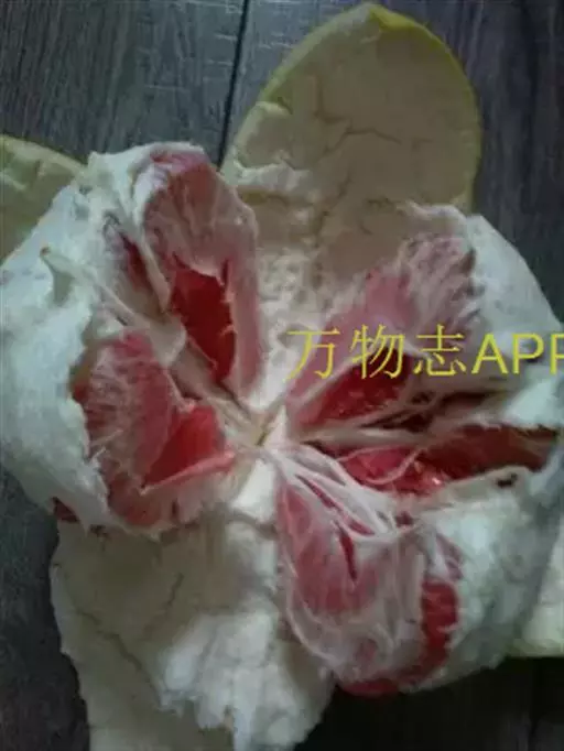 坪山柚:果椭圆形,两肩削,果顶近于平坦,蒂部有凸棱,果皮油胞大,凸起,海绵层及果肉均淡红色,果心空,肉爽脆,水分多,味清甜,酸份低。果期与文旦同。