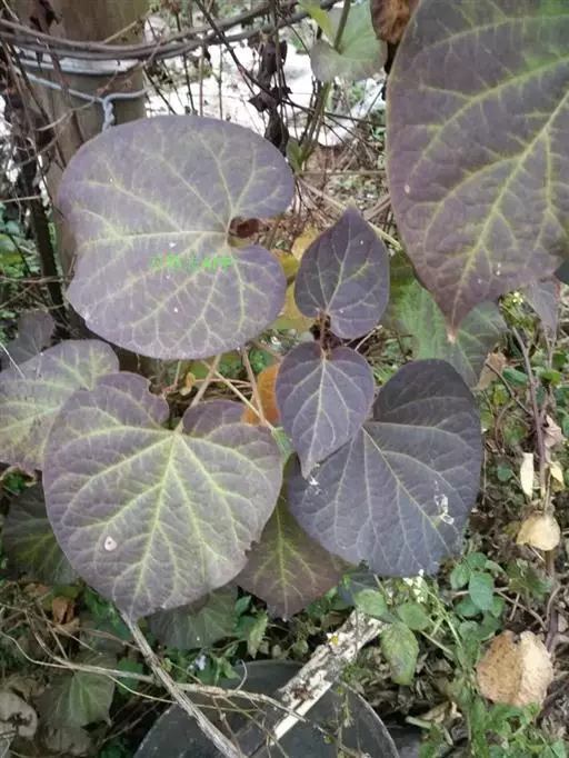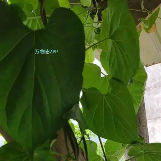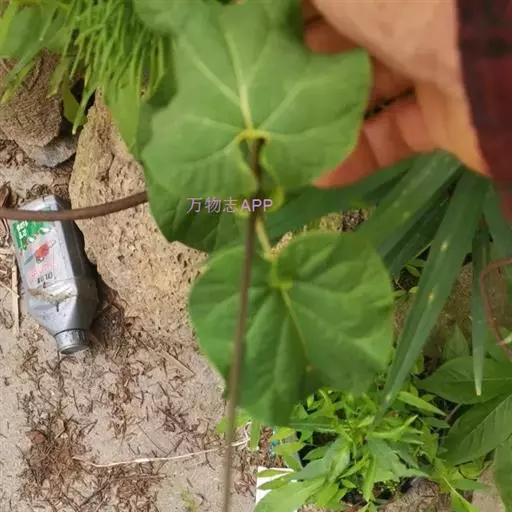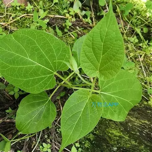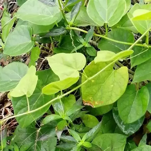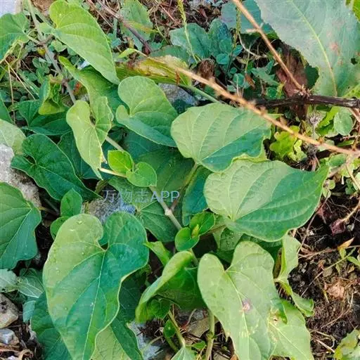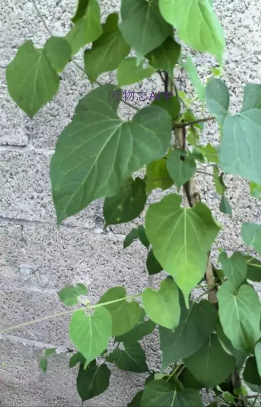 蔓性半灌木;宿根肥厚,呈块状;茎圆形,被微柔毛。叶对生,膜质,被微毛,宽卵形至卵状长圆形,长4-12厘米,宽4-10厘米,顶端短渐尖,基部心形。