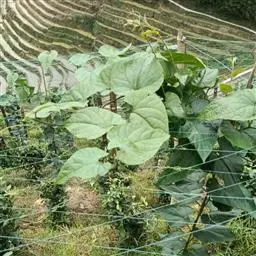 根状茎苗繁殖:根状茎苗是指由根状茎梢抽出地面的苗茎。将藤理顺,选择健壮藤,每2-3个藤节挖4-5厘米深左右土沟,放沟内用湿润泥士压紧,露出叶柄叶片。按此方法间隔3-4个藤节再埋藤,每根主藤可以压多个藤节,藤尖留50厘米左右即可。
