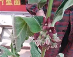 聚伞花序伞房状,着花30朵;花萼裂片卵状长圆形;花冠白色,辐状,裂片反折,内面具疏柔毛;副花冠浅杯状,裂片椭圆形,肉质,钝头,在每裂片内面的中部有1个三角形的舌状鳞片;花粉块每室1个,下垂;柱头圆锥状,顶端2裂。蓇葖双生,披针形,长8厘米,直径1厘米;种子卵状椭圆形;种毛白色绢质。花期6-9月,果期7-11月。