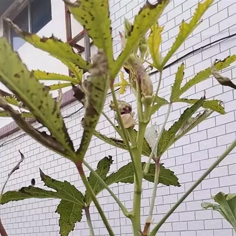 咖啡黄葵 Moench)亦称黄秋葵,是锦葵科一年生草本植物。茎圆柱形,疏生散刺。叶掌状,裂片阔至狭,…