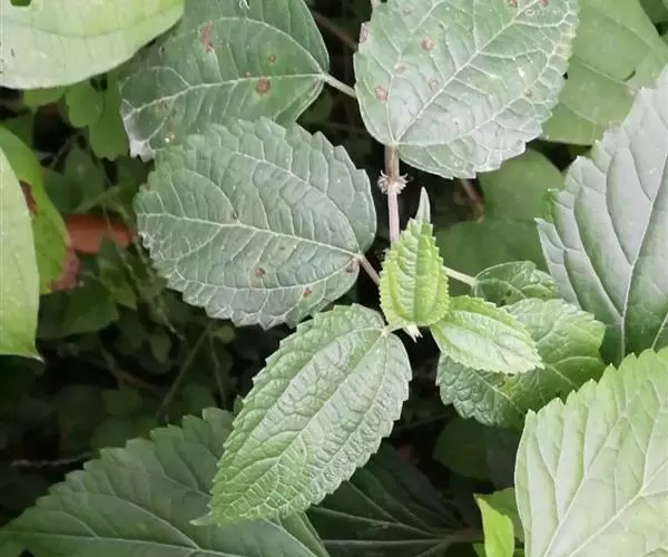 一年生草本。茎肉质,直立,高5-50厘米,无毛,分枝或不分枝。叶近膜质,同对的近等大,近平展,菱状卵形或宽卵形,长1-9厘米,宽0.6-5厘米,先端渐尖、短渐尖、锐尖或微钝(尤在下部的叶),基部常宽楔形,有时钝圆,边缘除基部全缘外,其上有牙齿或牙状锯齿,稀近全绿,两面疏生透明硬毛,钟乳体条形,长约0.3毫米,基出脉3条,侧出的一对微弧曲,伸达上部与侧脉网结或达齿尖,侧脉数对,不明显,上部的几对常网结;叶柄长0.5-4.5厘米,上部近叶片基部常疏生短毛;托叶卵状长圆形,长2-3毫米,后脱落。