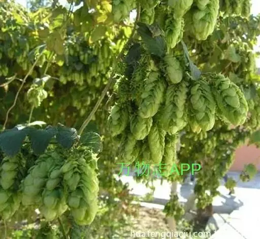 啤酒花(学名:Humulus lupulus Linn. )是桑科,葎草属多年生攀援草本植物,茎、枝和叶柄密生绒毛和倒钩刺。叶片卵形或宽卵形,先端急尖,基部心形或近圆形,边缘具粗锯齿,表面密生小刺毛,叶柄长不超过叶片。雄花排列为圆锥花序,花被片与雄蕊均为5;雌花每两朵生于一苞片腋间;苞片呈覆瓦状排列为一近球形的穗状花序。果穗球果状,瘦果扁平,花期秋季。