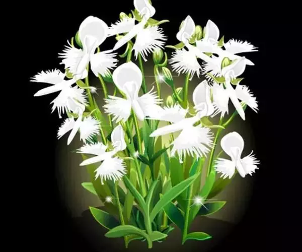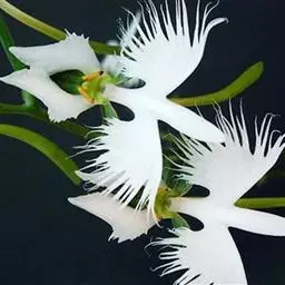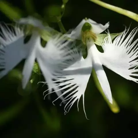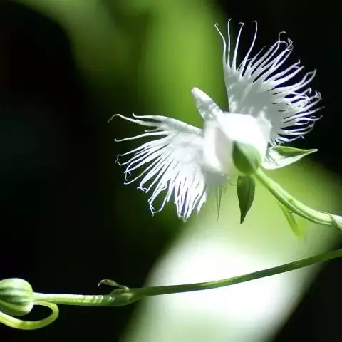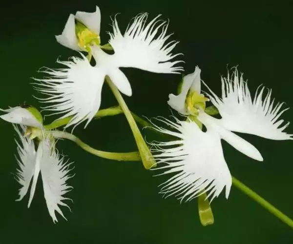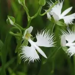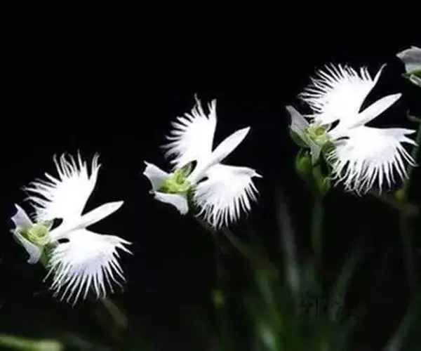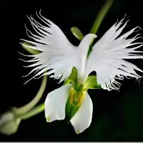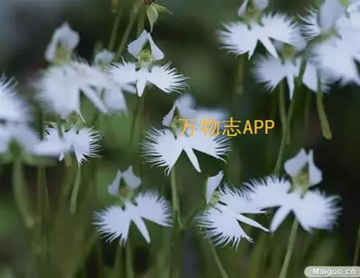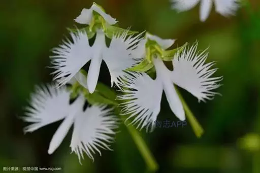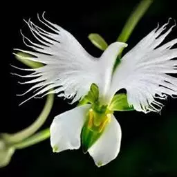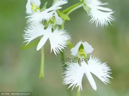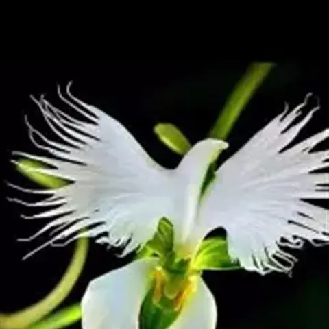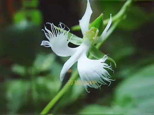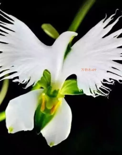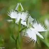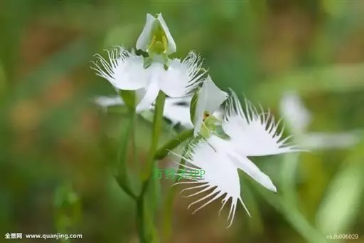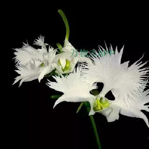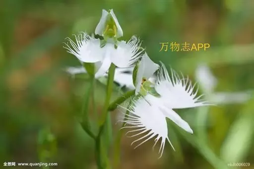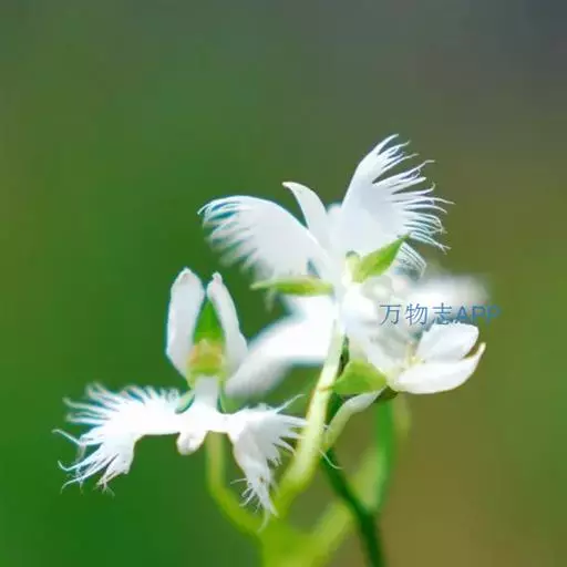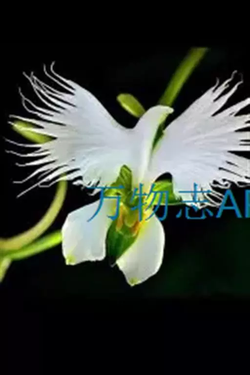 狭叶白蝶兰(学名:Pecteilis radiata (Thunb.) Rafin.):植株高18-35厘米。块茎椭圆形或近球形,肉质。茎细长,直立,基部具3-5枚叶。叶片线形,长5-10厘米,宽3-6毫米,向上伸展,先端渐尖,基部成抱茎的鞘。总状花序具1-2朵花;花较小,直径约1.5-3厘米,白色;萼片淡绿色,狭卵形;花瓣白色,斜卵形,直立,长10-12毫米,先端近急尖,外侧边缘具齿或浅的流苏,与中萼片靠合呈兜状;唇瓣白色,短楔形,长约巧毫米,3深裂。花期7-8月。
