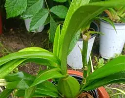 方法一 准备好兰盆及植料后,将兰株倒拿(根在上,叶在下)放于水龙头下以慢水冲洗,但水压切忌过强,以免伤兰根及叶子。用拇指和食指抓住兰头,小指抵住盆缘,用竹筷将根固定,当放入盆内时,尽量不要让根接触到盆壁。将豆粒大的混合石砾倒入盆底至三分之一处。然后倒入中粒植料至五分之四处,填实和尽量不要留下空间。将竹筷拔出,并摇实盆中植料。填实植料后,再用大粒植料埴入至距盆缘1.5厘米处。最后再倒入豆粒大植料,以将假鳞茎全部埋入土中为度,然后充分摇实。用压土工具轻压植料,并将表面弄平。种植完毕后,植料在盆中以中央稍高为好。