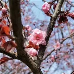 美人梅是蔷薇科李属的落叶小乔木。叶互生,呈广卵形或卵形,紫红色;花呈淡紫红色,半重瓣或重瓣,花叶同放,…