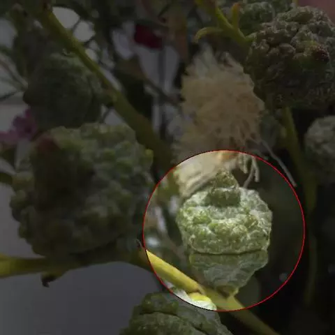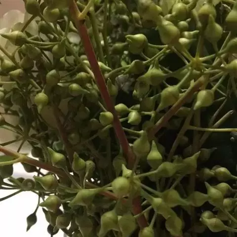 伞形花序腋生,有花5-8朵,总梗圆形,纤细,长1-1.5厘米;花梗长5-7毫米;花蕾卵形,长8毫米;萼管半球形,长3毫米;帽状体长6毫米,近先端急剧收缩,尖锐;雄蕊长5-7毫米,花药椭圆形,纵裂。蒴果近球形,宽5-6毫米,果缘突出2-3毫米,果瓣4,有时为3或5。花期12月-8月。