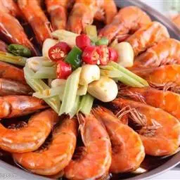 炒大虾是一道菜品,制作原料有大对虾、葱段、姜片等,用微火焖烤透,再将勺移正火,收汁微浓时放入味精,淋入香油即成。