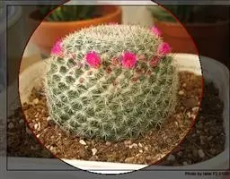 猩猩球为仙人掌科乳突球属,植株单生,圆筒状,疣突腋部有绵毛及刺毛。花浅红至紫红。栽培较普遍,变种极多。