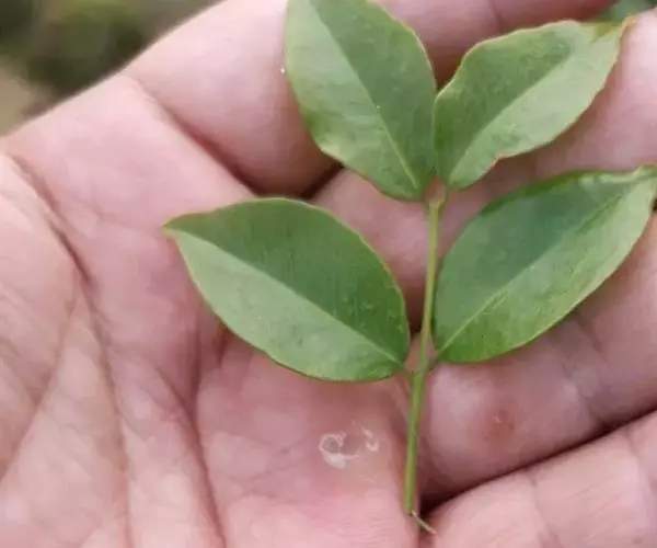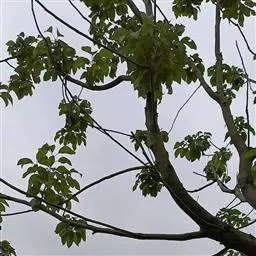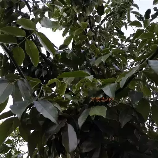 常绿或落叶乔木,高达20-30米,胸径可达1米;树皮灰绿色,平滑。小枝绿色,幼时有黄褐色细毛,后变光滑;冬芽有褐黄色细毛。奇数羽状复叶,长12.5-23厘米;叶柄长2-4厘米,叶轴长3.5-7.7厘米,叶轴在最上部一对小叶处延长0.2-2厘米生顶小叶;小叶(1-)2(-4)对,薄革质,卵形或卵状椭圆形,稀近圆形,长3-10.5厘米,宽1.5-5厘米,先端急尖或渐尖,基部圆形或阔楔形,上面深绿色,下面淡绿色,幼叶疏被细毛,老则脱落无毛或仅下面中脉有疏毛,侧脉8-10对,和中脉成60°角,干后侧脉和细脉均明显凸起成网格;小叶柄长2-6毫米,圆形,无凹槽,小叶柄及叶轴疏被毛或无毛。