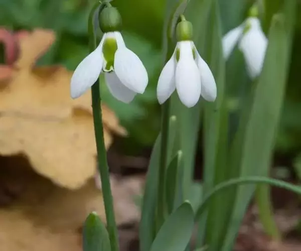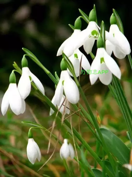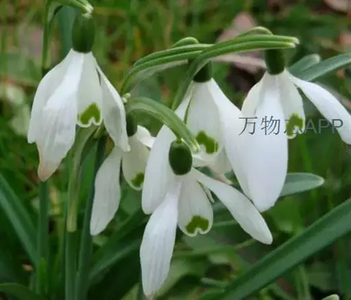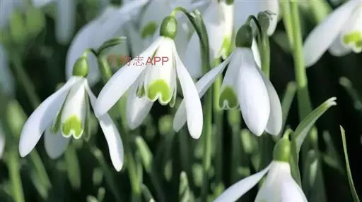雪滴花(学名:Galanthus nivalis Linn.)是石蒜科,雪滴花属多年生草本植物,株高可达30厘米。叶丛生,线状带形,绿色被白粉,花亭直立,扁圆形;花顶部单生,下垂;花梗短;花被片椭圆形,无筒部,呈广钟形,白色,每裂片端具一绿点。早春3月下旬至4月开花。