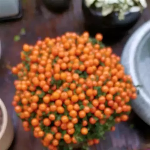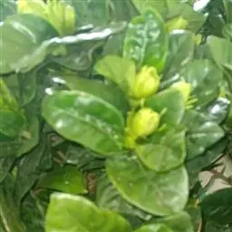 栀子花,花朵簇状约30枚瓣,奶油色,中心黄色;花径12cm;气味果香.