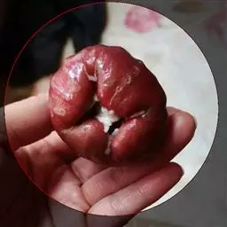 母丁香 呈长倒卵形至长圆形; 长 2 ~ 2. 5cm,直径 0. 6 ~ 1cm;先端有齿状萼片4 枚,向中央弯曲,基部具果柄残痕; 表面棕褐色,粗糙,多细皱纹; 果皮与种皮薄壳状; 质脆,易破碎脱落,有的已无果皮或种皮,仅为种仁; 种仁倒卵形,暗棕色,由两片肥厚的子叶抱合而成; 子叶形如鸡舌,不规则抱合,中央有一条细杆状的胚根,由子叶的中央伸到较宽的先端; 质坚硬,难破碎; 气微香,味辛辣。