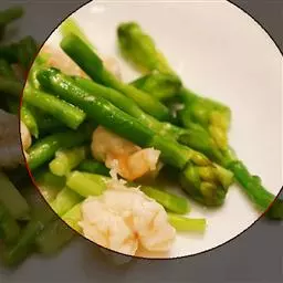 5.倒入煸好的 豆角,与锅内食材一同拌炒2分钟。