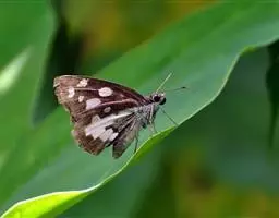 姜弄蝶 Udaspes folus ,又叫银斑姜蝶。幼虫吐丝粘叶成苞,隐藏其中取食,…