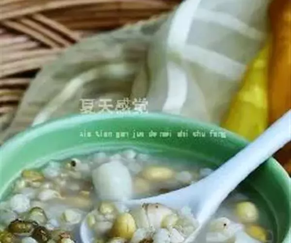 山药莲子汤 将莲子去皮去芯,与淮山药、薏苡仁一起洗干净,共入沙罐中,加水量,以文火煮至熟烂,放入白糖即成。