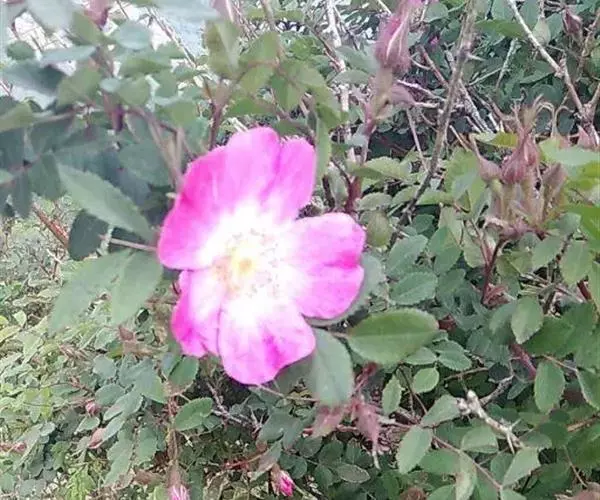 刺蔷薇:灌木,高1-3米;小枝圆柱形,稍微弯曲,红褐色或紫褐色,无毛,有细直皮刺。小叶片宽椭圆形或…