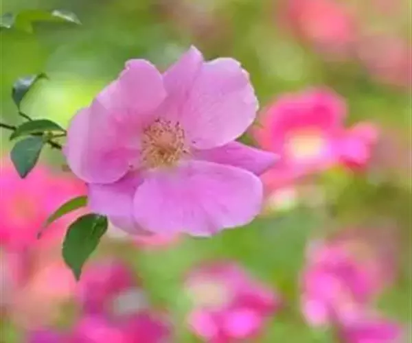 美蔷薇(学名:Rosa bella Rehd. et Wils):是蔷薇科,蔷薇属的一种直立灌木,高1-3米;小枝有细而较直立的皮刺。羽状复叶;小叶7-9,长椭圆形或卵形,边缘有锐锯齿;叶柄和叶轴有柔毛和腺毛,有时有小皮刺;托叶宽。花粉红色,直径4-5厘米,芳香。蔷薇果,椭球形,长1.5-2厘米,深红色,顶端渐细略成颈状,表面被腺毛。