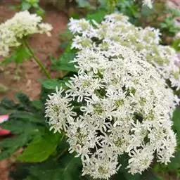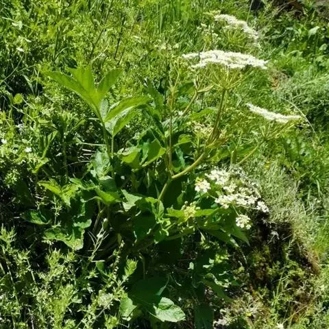 多年生草本,高60-100厘米,有毛。根长圆锥形,淡棕色。茎直立,有棱槽,中空,上部多分枝。基生叶有柄,叶柄长3.5-7厘米,基部有长而宽的叶鞘;叶片轮廓为卵形,长达20厘米,一至二回羽状全裂,一回裂片3-4对,斜卵形,下部的有短柄;小裂片卵状披针形,最下一对全裂,其它深裂或缺刻状,无柄下延,边缘有不整齐锯齿,下表面被有柔毛;茎生叶三回三出式羽状深裂,无柄,上部叶逐渐简化。复伞形花序顶生和侧生,花序梗长7-20厘米;总苞片缺;伞辐30-50,长6-12厘米,不等长,具细毛,小总苞片少数,线形,长约6毫米,被有细毛;萼齿细小;花瓣白色,二型;花柱近直立。果实椭圆形或近圆形,长4-6毫米,光滑,背部每棱槽中有油管1个,共有4条,其长度为分生果的一半,合生面油管2。花期7-8月,果期8-9月。