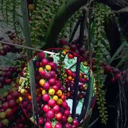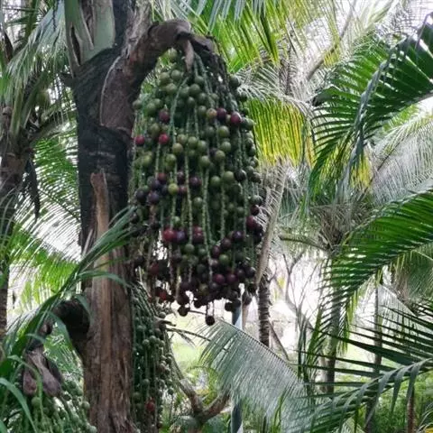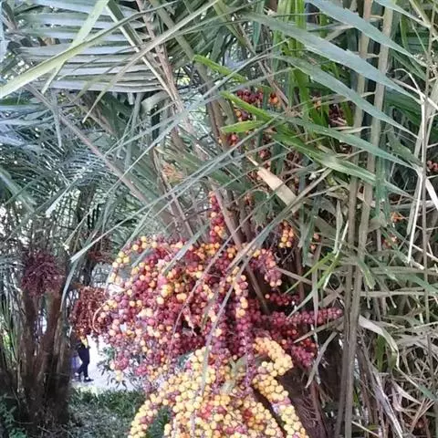 种子处理:桄榔树果实成熟不一致,每年从夏到冬均有成熟,桄榔树果穗有果实数百颗,每颗有种子1-2粒,核果球形或椭圆形。果实成熟时果皮蜡质,暗红色,剖开果实见种子呈暗褐色,此时可采种。种子处理方法有两种:一是将果实堆沤数日,待果皮腐烂后置水中搅拌,洗净种子;二是将果实摊放于通风处,当果皮干缩开裂后剥出种子。