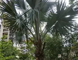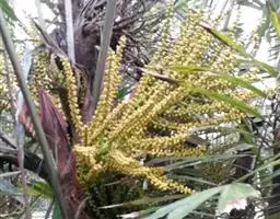 桄榔(学名:Arenga pinnata (Wurmb.) Merr. )是棕榈科,桄榔属乔木状植物,茎较粗壮,高可达10米,有疏离的环状叶痕。叶簇生于茎顶,羽状全裂,羽片线形或线状披针形,基部两侧常有不均等的耳垂,上面绿色,背面苍白色;花序腋生,花序梗粗壮,下弯,分枝多,佛焰苞多个,螺旋状排列于花序梗上;雄花大,果实近球形,具三棱,种子黑色,卵状三棱形,6月开花,果实约在开花后2-3年时间成熟。