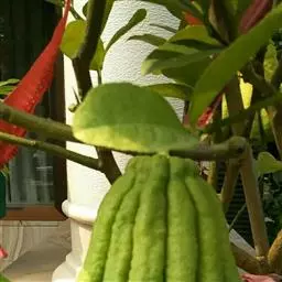 香橼为小乔木或灌木状;株高达5米;幼枝、芽及花蕾均暗紫红色;茎枝多刺,长达4厘米;单叶,…