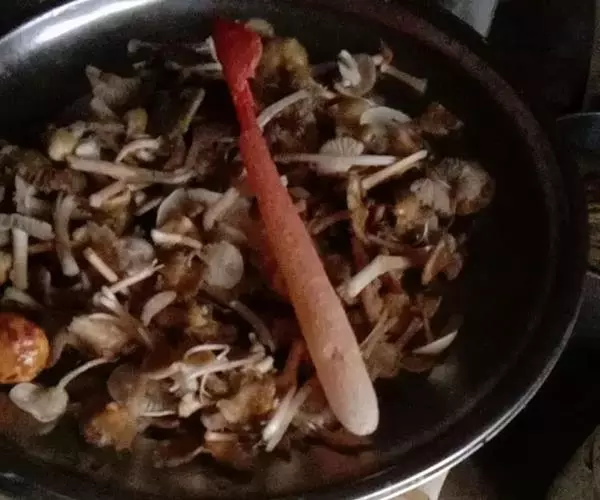 5、连锅一起,放在火上加热,直到听到“滋滋”的声音,关火。