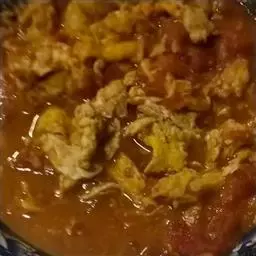 6、趁锅壁火烫,用勺将生鸡蛋迅速在锅壁上一抹,鸡蛋会很快熟,然后再拌入辣酱,即可食用。