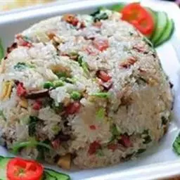 白米饭上盖上黄豆芽等蔬菜,肉和鸡蛋等佐料,盛在滚烫的石碗内,加放适量的辣椒酱后,搅拌而食,这就是韩国料理中的石锅拌饭。拌饭的佐料很关键,蔬菜最好选用嫩豆芽、芹菜、红萝卜丝、蘑菇丝,用油和黑胡椒粉炒熟;荤的选用酱料炒好的肉末。白米饭煮熟后,放入石锅前,在石锅底部及边缘涂抹一层香油,其作用是不使米饭粘锅,同时增加了油香的味道。把石锅放在炉子上,炉子要开最小的火,然后把各种蔬菜佐料放在米饭上面,最后撒点芝麻,淋香油。煎鸡蛋时蛋黄完整而表面凝结,使其脱离蛋清而不破裂,不能煎太熟。把煎好的鸡蛋铺在石锅饭上面。石锅放入米饭后,铺上与之相拌的蔬菜、肉末与鸡蛋,加热后当香油 “嗞嗞”作响时端下,浓香四溢。