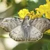 翅展18-35mm,体长10-13mm.头棕褐,下唇须中等长,黄褐色;触角茶褐,雄双栉形,端部丝状,雌为丝状;身体背面茶褐,腹面黄褐。前翅灰褐,骨线;中线及外线不明显;亚外缘线灰褐色,呈波浪纹;中线附近有灰白色散斑,形成一条由8个灰色椭圆点组成的宽线,中室内有1白点。后翅的内线;中线及外线均褐色,呈波浪纹,但不甚明显,中室部位有较前翅小的灰白色散纹,夹持在内线与中线之间。前后翅反面黄色,有金属光泽,中线赭红隐约可见,但散形斑纹消失。