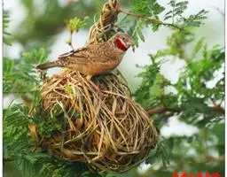 红梅花雀小型鸟类,体长9-10厘米。雄鸟通体朱红色,背、肩、胸等满布白色小斑点,…