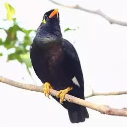 金冠树八哥为椋鸟科树八哥属的鸟类。体长约23厘米,闪辉黑色。特征为具翼斑及颏黄色,脸颊裸露皮肤粉黄色。…
