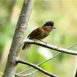 条纹噪鹛是画眉科、噪鹛属中型鸟类,体长28-32厘米。头具短的羽冠,上体栗褐色,飞羽外翻蓝灰色。…