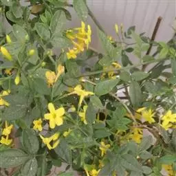 云南黄素馨,又叫云南迎春,常绿藤状灌木。小枝无毛,四方形,具浅棱。叶片对生,小叶3枚,长椭圆状披针形,顶端1枚较大,基部渐狭呈一短柄,侧生2枚小而无柄。花单生,淡黄色,具暗色斑点,花瓣较花筒长,常近于复瓣,有香气。花期3~4月。原产云南,现各地均有栽培。