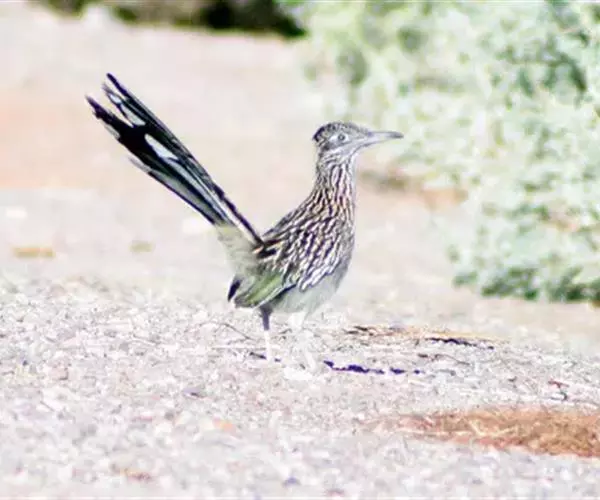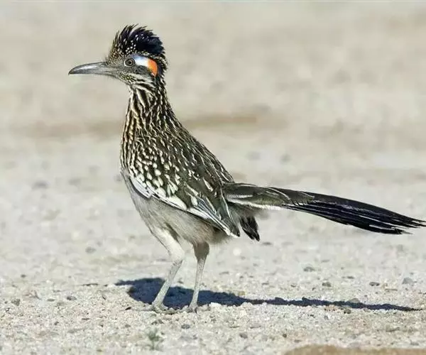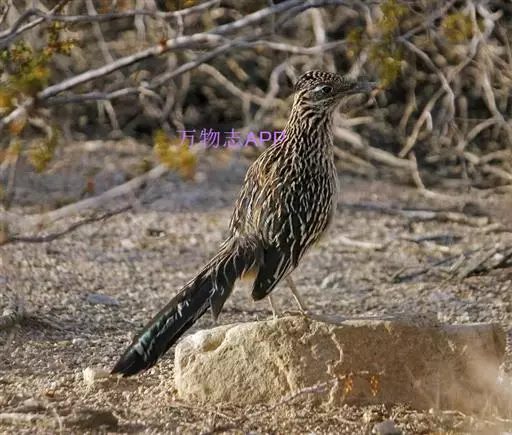 走鹃(road runner)鸟,英文名称字意为在路上赛跑者,亦称灌丛鸡(chaparralcock)。两种地栖杜鹃的统称,尤指美国西南部和墨西哥荒漠区的加州走鹃(Geococcyxcalifornianus)。体长约56公分(22寸)。羽衣橄榄褐和白色相间,有条纹。羽冠短而蓬松。眼後皮肤裸露,蓝红相间。腿粗壮,浅蓝色。尾长,凸形,向上翘。飞行笨拙且易疲乏。通常喜沿着道路跑或串行於灌木蒿和牧豆树的灌丛中,捕食昆虫、蜥蜴和蛇。捕到爬虫类後,用结实的喙将其啄死,然後从头部开始吞下。每窝产卵2∼12枚(通常3∼5枚),卵白色。营巢於仙人掌或小树下层,巢结实,由树枝构成。小走鹃(G.velox)稍小,长46公分(18寸);羽毛稍呈淡黄色,条纹较少。