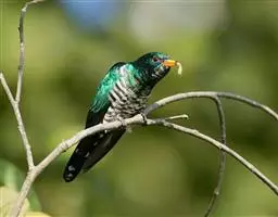 斑翅凤头鹃: 成鸟具羽冠,上体及头侧、翅、尾等黑色,具铁绿色亮辉,尾羽端部具白斑,两侧者形宽,…