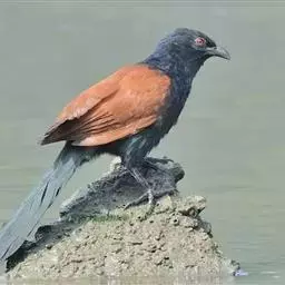 红翅凤头鹃:体长约38厘米,顶冠及凤头黑色,具显眼的直立凤头,背及尾黑色而带蓝色光泽,翅栗红色,…