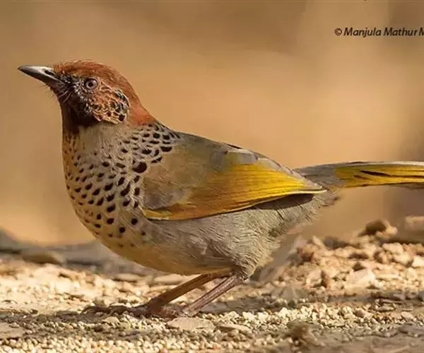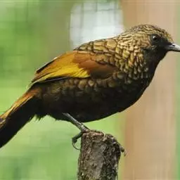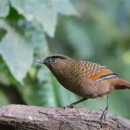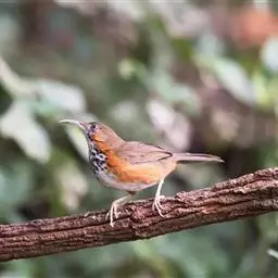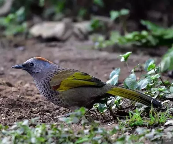 大噪鹛:中型鸟类,体长32-36厘米。额至头顶黑褐色,背栗褐色满杂以白色斑点,…