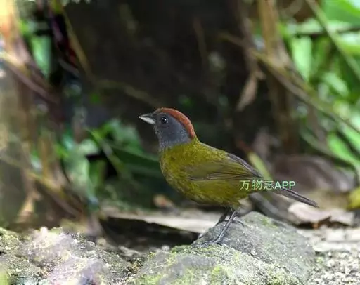 黑顶噪鹛:中型鸟类,体长24-26厘米。前额、脸、颏、喉黑色,头顶黑褐沾棕或深棕橄榄褐色,…