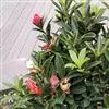 常绿灌木,高3米,嫩枝淡红色,无毛。嫩叶淡紫红色,老叶椭圆形或长椭圆形,先端急尖,基部宽楔形。花为淡黄色或略带粉红色,1-3朵成腋生或顶生,花径1.5 -2.5厘米;花朵有花瓣6-8片;子房3室,被灰白色短柔毛;花柱3条,完全分离,无毛;花期10-12月。蒴果扁球形,通常3室,每室有种子1-2粒,褐色,无毛。主要分布于广西宁明县;生于海拔190-350米的酸性土山杂木林中。本物种可作杂交育种的亲本。