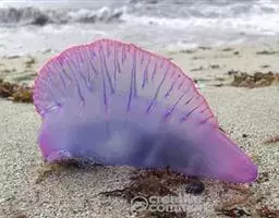 僧帽水母是腔肠动物的一种,它属于水螅虫纲,呈蓝青色,浮囊两头尖,底平,形如僧侣的帽子,因而名叫“ 僧帽水母”。它的浮囊上有发光的膜冠,能自行调节方向,借风像帆船似的在水面漂行。
