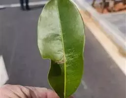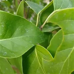 叶片革质,近于无柄,细小,卵状披针形,长2-5厘米,宽1-1.5厘米,先端钝而渐尖,或钝而略尖,基部微心形,上面干后灰绿色或灰褐色,无光泽,下面稍浅,侧脉12-16对,在上面明显,在下面隐约可见,近于水平斜出,边脉极靠近边缘,侧脉间相隔约1.5毫米。