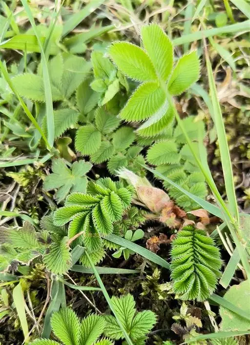 基生叶为间断羽状复叶,有小叶6-13(-15)对,连叶柄长6-30厘米,叶柄密被开展长柔毛及短柔毛,小叶片无柄或有时顶生小叶片有柄,倒卵长圆形或倒卵椭圆形,长1 6.5厘米,宽0.5-3.5厘米,顶端圆钝。基部楔形或宽楔形,边缘有多数尖锐锯齿,上面绿色或暗绿色,伏生疏柔毛,下面密被白色绢毛及绒毛;茎生叶与基生叶相似,惟向上部小叶对数逐渐减少;基生叶托叶膜质,褐色,外被长柔毛;茎生叶托叶草质,下面被白色绢毛,上面绿色,被长柔毛,边缘有锐锯齿。