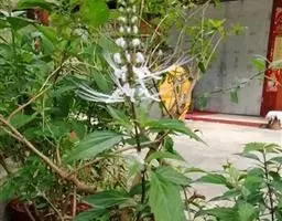 性喜高温,生育适温22~30度C,不耐霜害; 依附墙角生长。