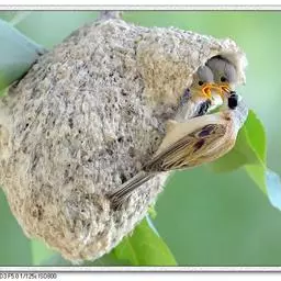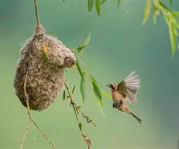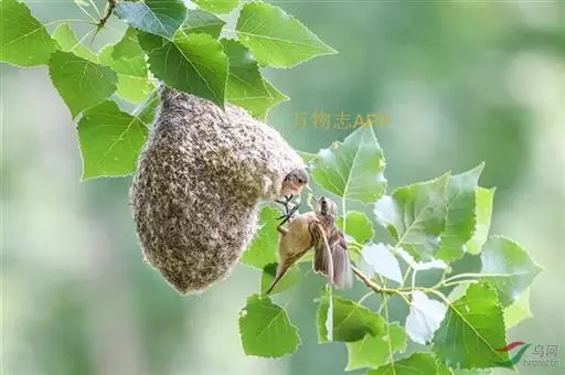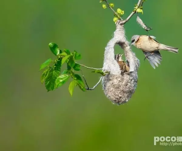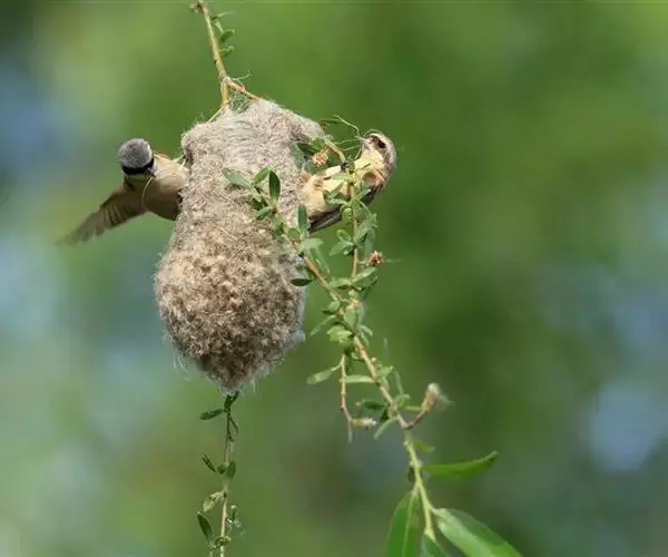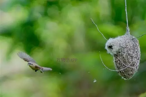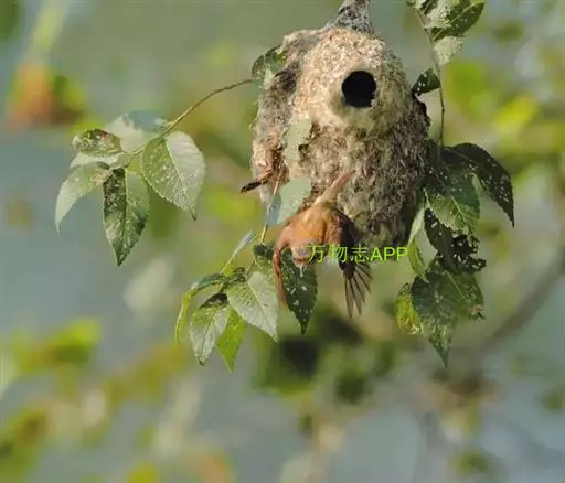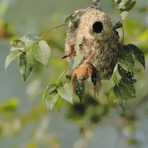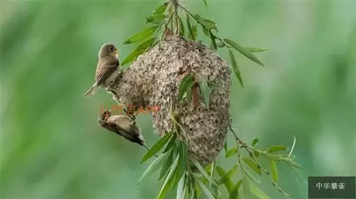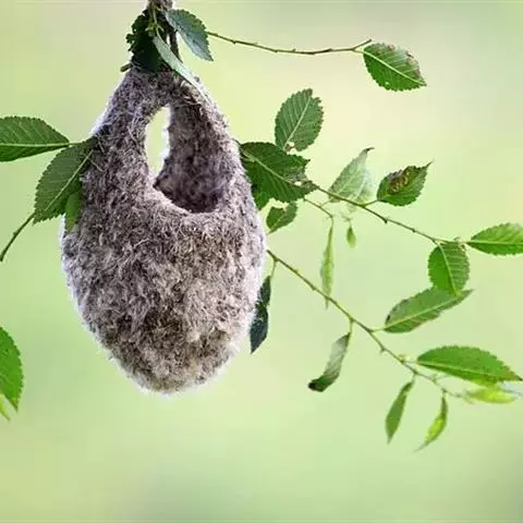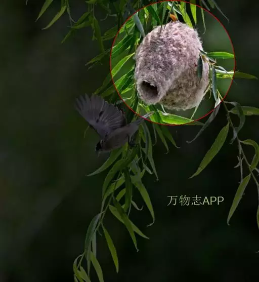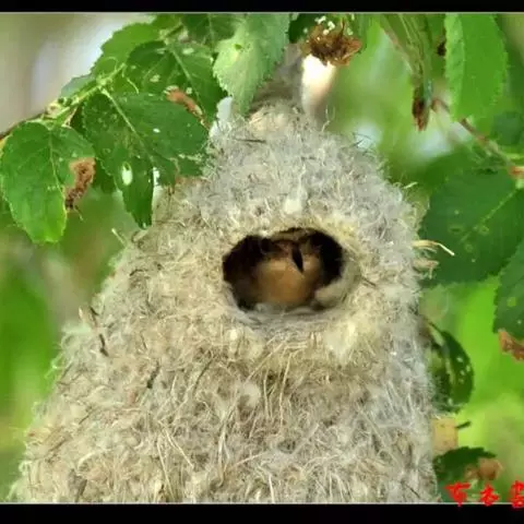 巢呈囊袋状,主要由树皮纤维、羊毛、蒲绒、杨絮、柳絮等编织而成,结构相当精巧,悬吊于乔木柔软的细枝末梢,很像一个悬挂的葫芦。巢顶端侧面月一管状开口,供亲鸟出入。营巢基本完成,但以后仍不断在内壁用杨絮和柳絮加厚,直到产卵期间亦不停止。每个巢从开始营造到最后完成需要8-12天。巢的大小为长12-16.5厘米,宽8.4-10.5厘米,深8.5-10厘米,外径3-4.5厘米,巢口内径2-3.8厘米,巢口管长0.9-4厘米。