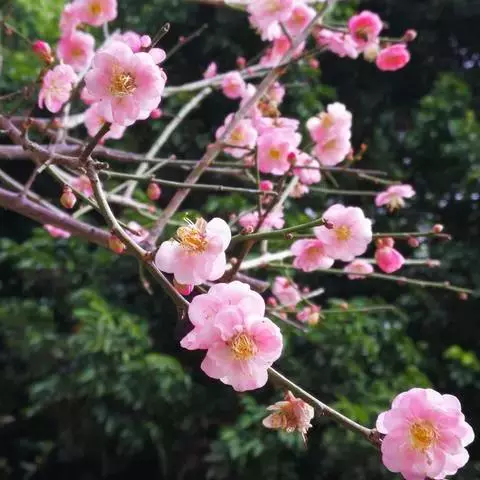 杏的常见栽培供观赏的树种,主要有以下类型:1.垂枝杏 f. pendula (Jager) Rehd.枝下垂。2.斑叶杏 f. variegata (West.) Zabel 叶有斑彩 。