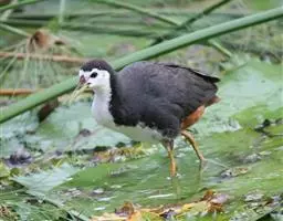 白胸苦恶鸟(学名:Amaurornis phoenicurus)属于鹤形目秧鸡科的鸟类,共有4个亚种。嘴基稍隆起,但不形成额甲,嘴峰较趾骨为短;跗骨较中趾(连爪)为短;翅短圆,不善长距离飞行。善奔走,在芦苇或水草丛中潜行,亦稍能游泳,偶作短距离飞翔,以昆虫、小型水生动物以及植物种子为食。在繁殖期间雄鸟晨昏激烈鸣叫,音似“kue,kue,kue”,故称“姑恶鸟”或“苦恶鸟”。在荆棘或密草丛中,偶亦能在树上,以细枝、水草和竹叶等编成简陋的盘状巢。分布于分布于印度次大陆,中南半岛,太平洋诸岛屿,华莱士区和中国。