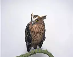 幼鸟白色具黑色脸盘,成鸟体长约50公分(1.7呎);上体褐色,下体色淡,胸部亦褐色。脸褐色,有白色眉纹。不具耳羽束。关于其觅食习性尚不清楚。