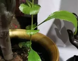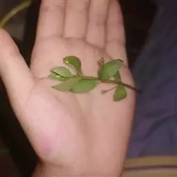 叶仅下部者有短柄;叶片三角状卵形、卵形或矩圆形,长4-20毫米,宽7-12毫米,顶端圆钝或急尖,基部截形或近心形,边缘有不明显的浅圆齿,侧脉3-4对,约以45度角伸展,上下两面均无毛。
